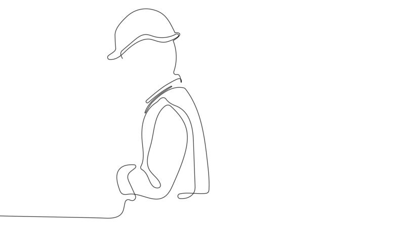 Single line animation showing an architect and site workers going over building plans at a job site. Pro Video