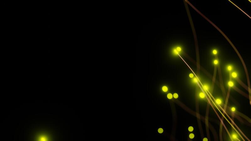Abstract yellow orange particles Simulation. Glowing lines and light particles on dark background. 3d render. Pro Video
