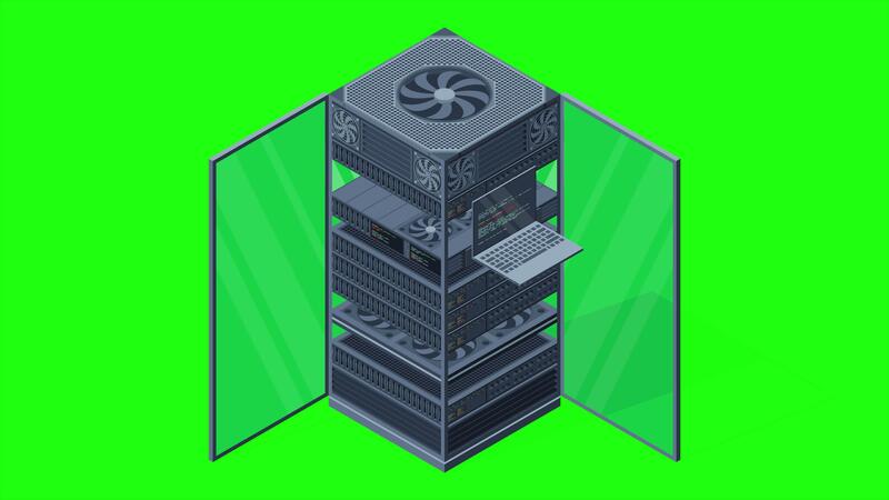 Isometric server animation. Server racks. Server boxes isolated. Network server room. Computer network technology. 4K animated in isometric style Free Video