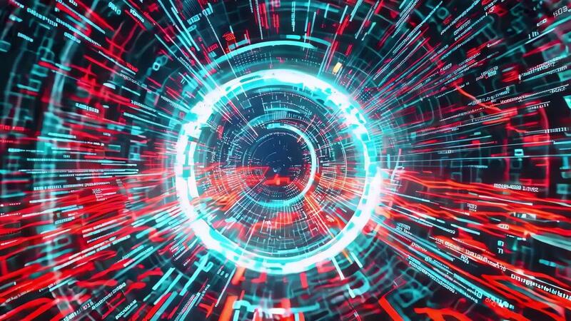 Futuristic abstract design depicting a dynamic energy tunnel with bright blue and red lights creating a sense of motion. Free Video