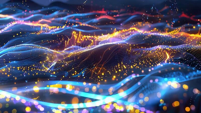 Abstract digital wave pattern featuring vibrant colors and glowing lights, creating a mesmerizing visual experience. Free Video