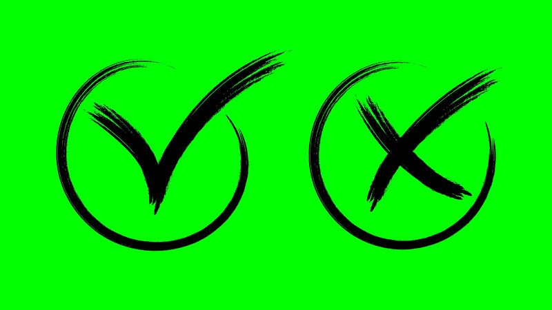 Chalked Tick and cross signs. Green background. False and true, right and wrong. Correct and incorrect, accept and reject. Scribbles grunge graphitti brush. Pro Video