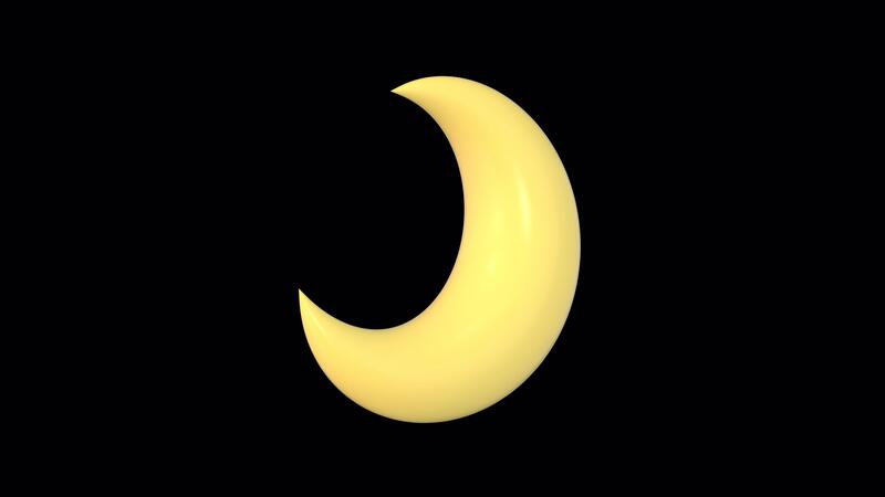 Crescent Moon 3D Icon Rotating on a Transparent Background. Seamless Loop. 4K Pro Video