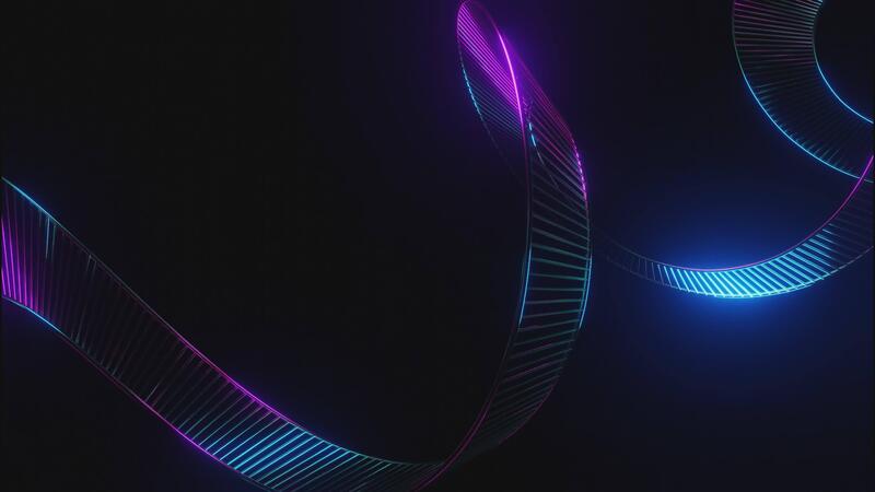 Black background with green and purple stripe. Design. Light animation from a ribbon of different colors that develops and sparkles. Pro Video