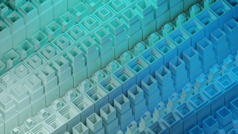 Blue light squares. Design. Small squares made in 3d format that move in different directions. Pro Video
