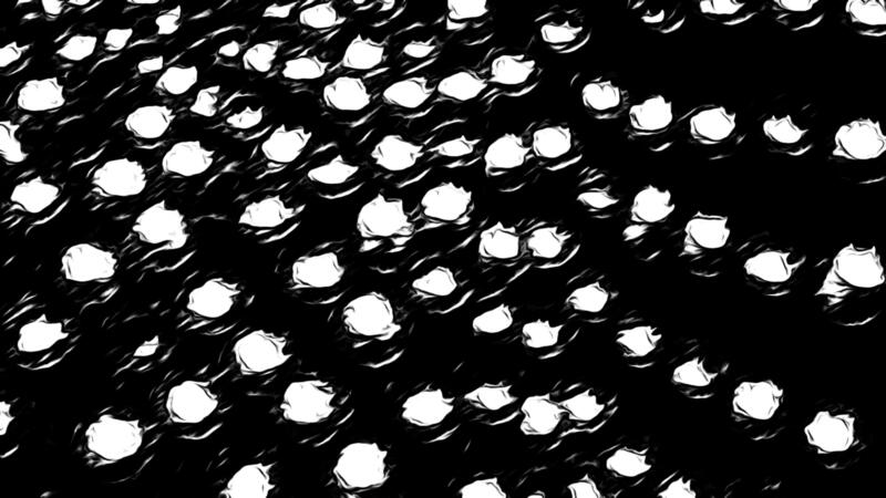 Abstract monochrome wavy background with white circular particles. Motion. 3D up and down motion of round shapes. Pro Video