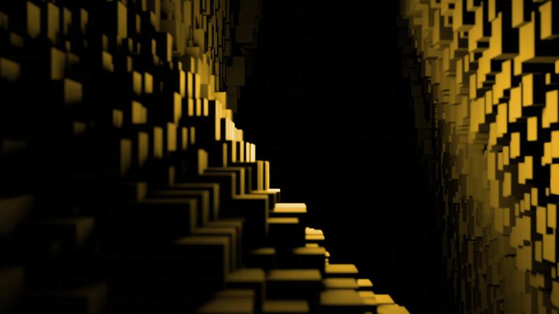 Pixelated background with flight inside dark tunnel. Design. Rows of cubic shapes, light and shadow. Pro Video