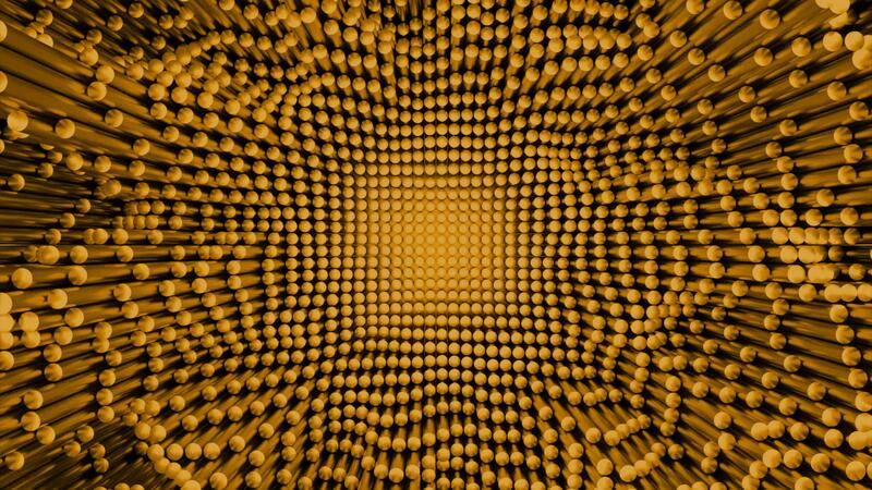 Red and yellow background with squares. Design. Small squares made in abstraction that scatter in different directions. Pro Video