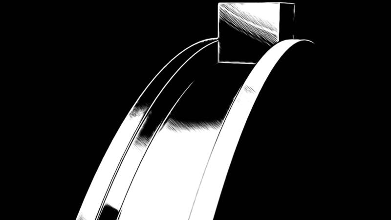 Abstract geometric pattern with metal arc and rolling 3D cube on a black background. Design. Surreal spinning pattern. Pro Video
