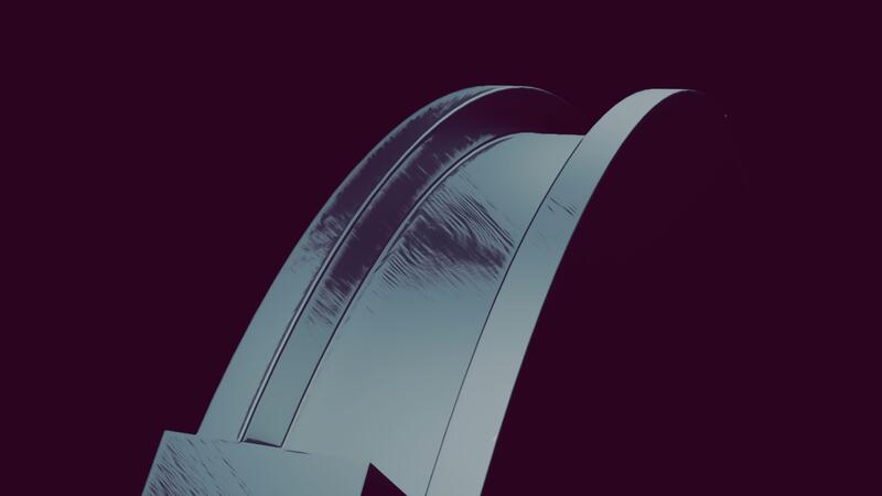 Abstract geometric pattern with metal arc and rolling 3D cube on a black background. Design. Surreal spinning pattern. Pro Video