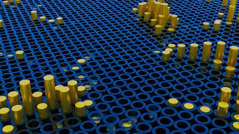 3D animation with rising columns. Design. Columns rise from holes in field. Surface with holes and moving columns Pro Video