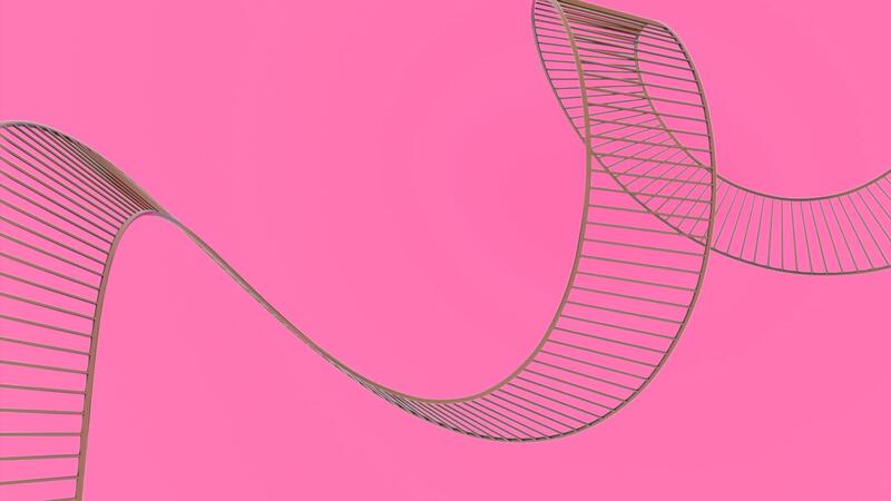 Rotating 3d spiral with stripes. Design. Ribbon 3d spiral with stripes on colored background. Ribbon spiral with lines moves in space Pro Video