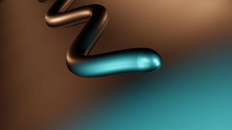 Two-color bright background. Design. A bright bright background with a ribbon drawing wave movements in different directions in 3d format. Pro Video