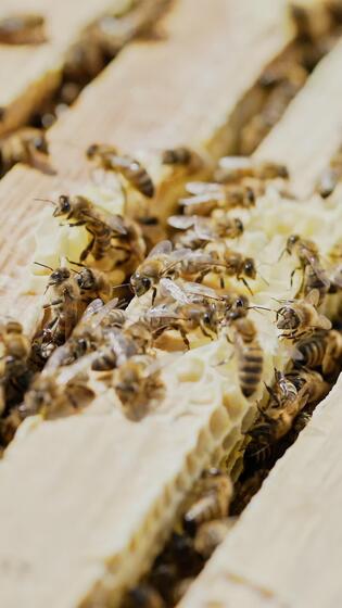 beekeeper works on an apiary, an open beehive. Frames with honey. An apiary in the summer. Vertical Pro Video