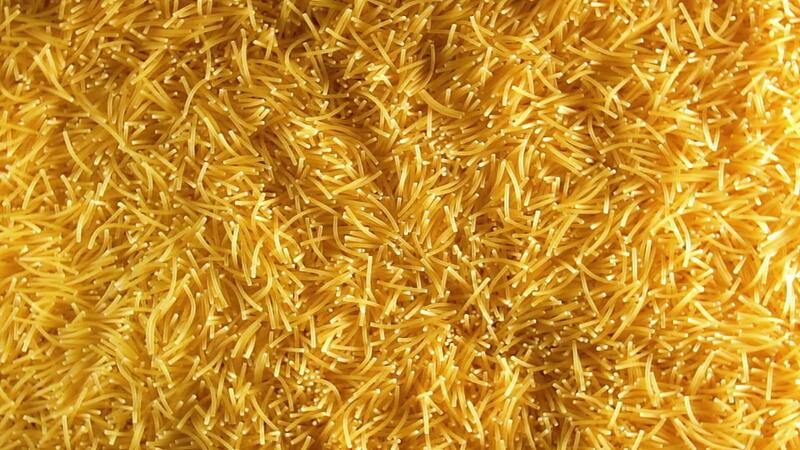 Background of Uncooked Noodles that Slowly Rotating Clockwise - Top View. Texture of Dry Vermicelli Turning Around. Raw Pasta with Low Key Light - Right Rotation Free Video
