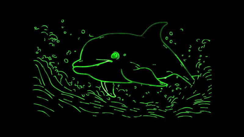Neon frame effect, Dolphin smiling dolphin with big eyes and playful waves around it on black background Free Video
