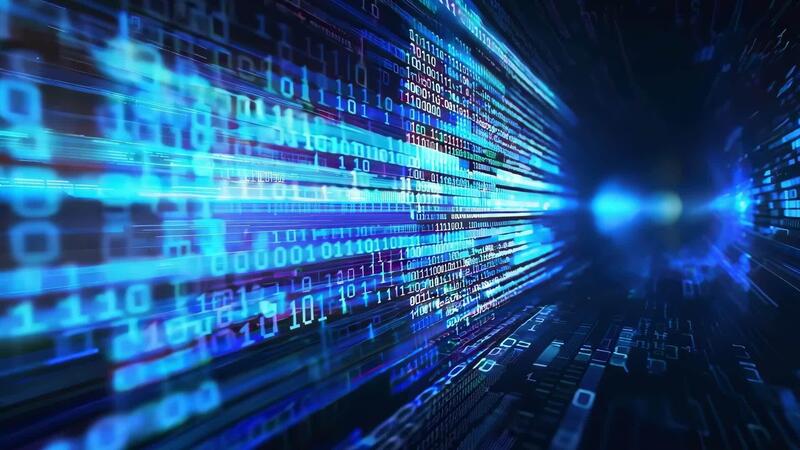 Dynamic binary code flowing through a digital space, representing technology, data transfer, and innovation in the digital age. Free Video