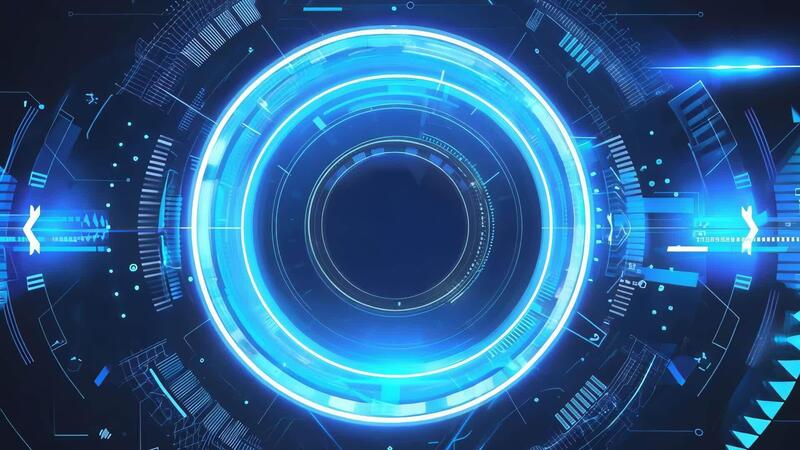Futuristic circular interface design with vibrant blue hues and intricate digital patterns for technology or innovation themes. Free Video