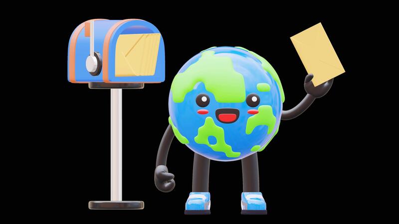 3D Earth Character Holding Envelope Next To Mailbox Suitable For Communication And Business Messaging Concepts.Transparent Background. Alpha Background Free Video