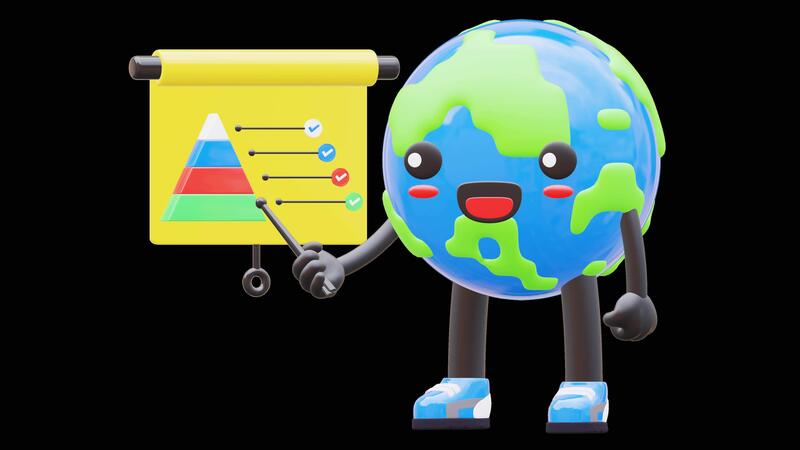 3D Earth Character Doing Presentation With Graph And Pointer Suitable For Business And Marketing Presentations.Transparent Background. Alpha Background Free Video