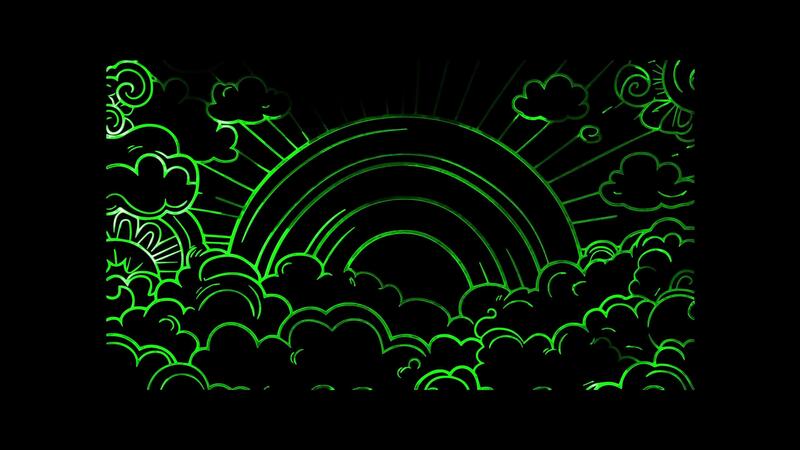 Neon frame effect, rainbow with clouds and cheerful weather elements on black background Free Video