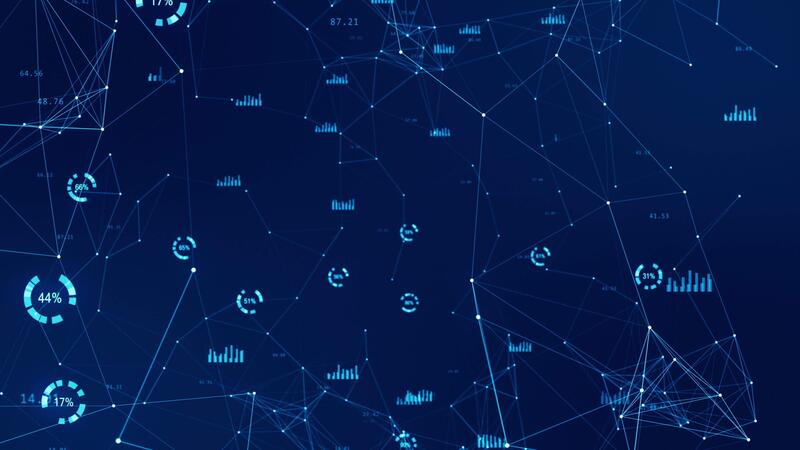 Motion graphic of Blue graph technology futuristic icon with mesh network connection abstract background concept seamless loop Pro Video
