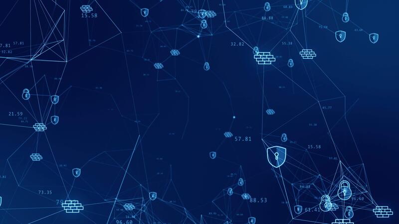 Motion graphic of Blue security futuristic icon with mesh network connection abstract background concept seamless loop Pro Video