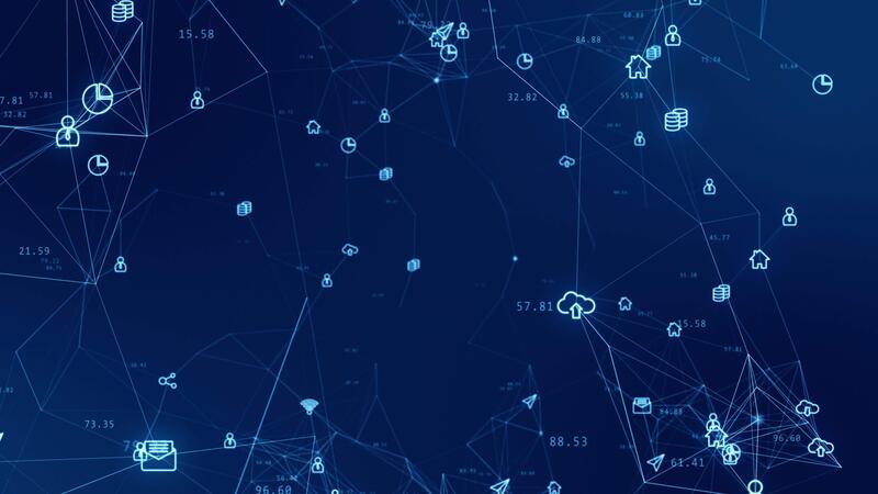 Motion graphic of Blue technology futuristic icon with mesh network connection abstract background concept seamless loop Pro Video
