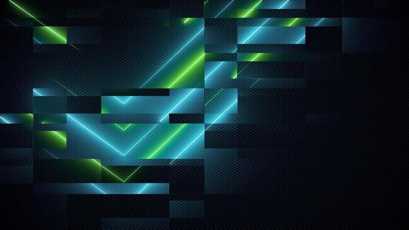 Technology background with blue and green neon light beams and glitch effect. Data visualization or network security concept. Sleek high tech futuristic animation. Free Video