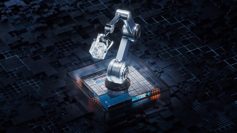 Mechanical arm with technological circuit background, 3d rendering. Pro Video