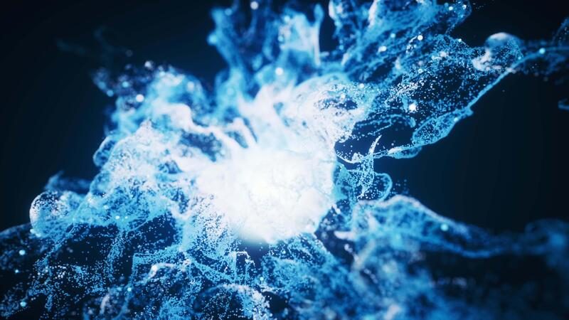 Blue flowing particles with explosive wave effect, 3d rendering. Pro Video