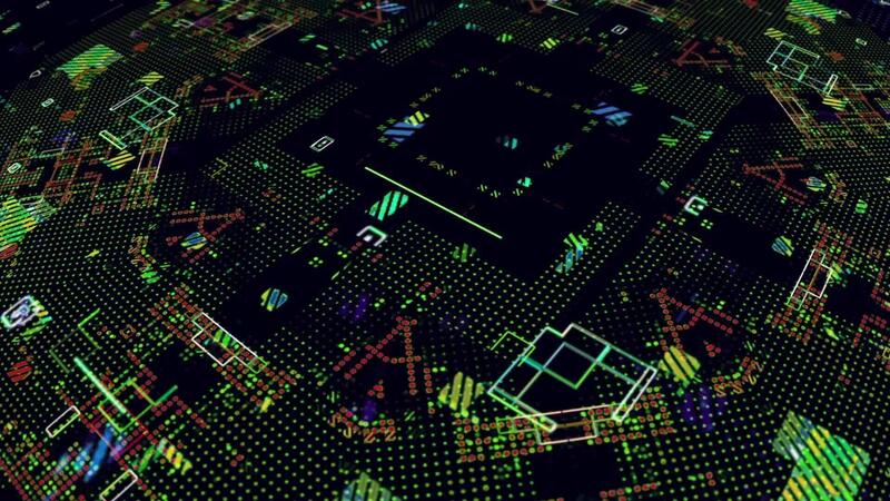 Futuristic Hud technology concept animation, digital motherboard background suitable for motion graphics about data transfer signals, digital simulations, and computer chips. Pro Video