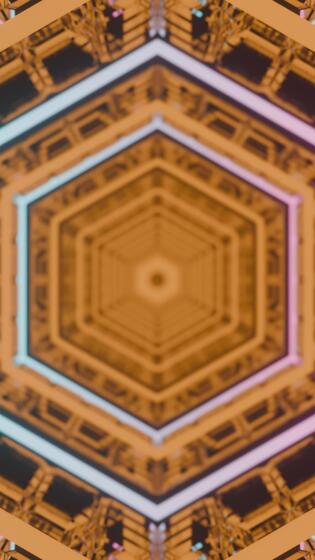 Enter a cutting edge hexagonal light tunnel filled with vivid colors in a futuristic setting. Design Pro Video