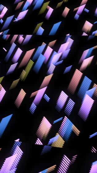Abstract flat bars flying on a black background. Animation. Multicolored segments flying diagonally and crossing each other. Pro Video