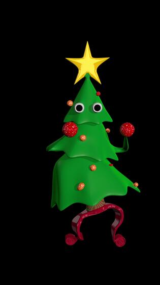 Green Christmas tree with gold star, decorated with red dancing bulbs against transparent background. Loop sequence. 3D animation Free Video