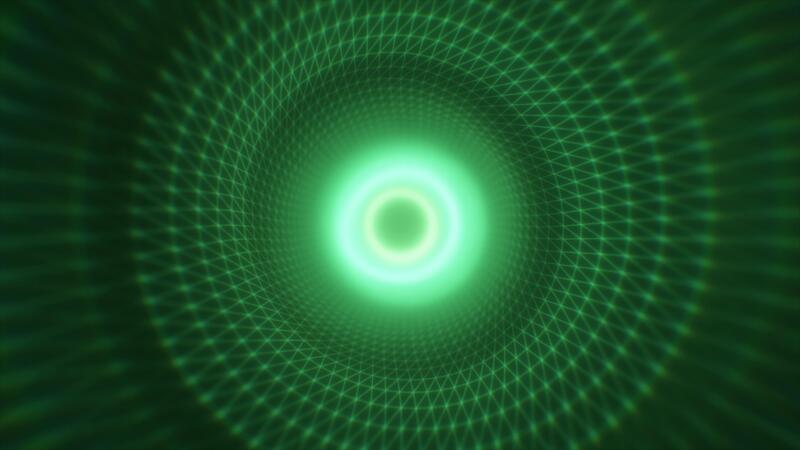 A hypnotic green vortex with a grid-like wireframe tunnel spiraling towards the center, creating a futuristic and geometric visual effect for technology, innovation abstract Free Video