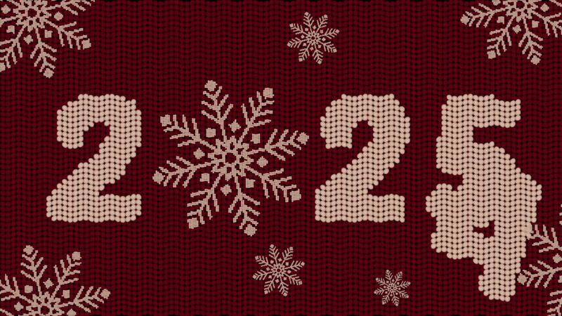 New Year greeting. Happy new year 2025 welcome. Changing the numbers of the year 2024 to 2025 on a background with knitted texture. Animation 4k Pro Video