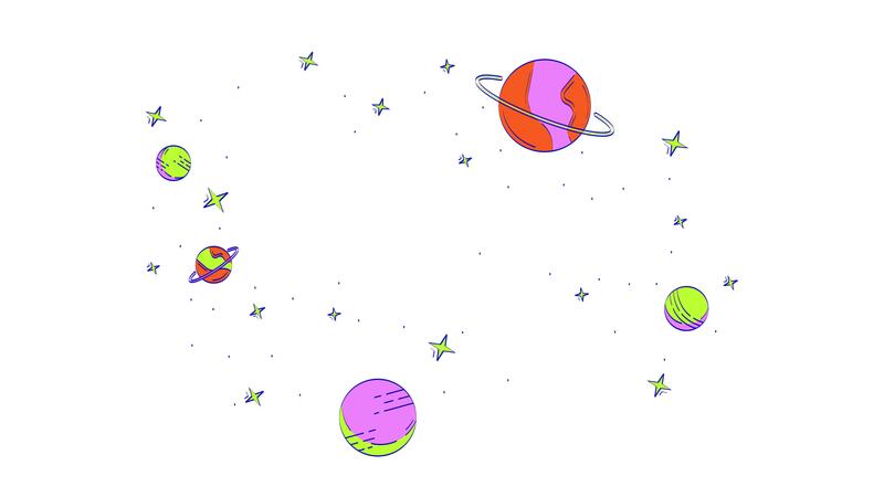 Floating planets and blinking stars in outer space 2D object doodle animation. Deep cosmos cartoon 4K drawing. Celestial bodies. Universe sky animated flat element isolated on white background Pro Video
