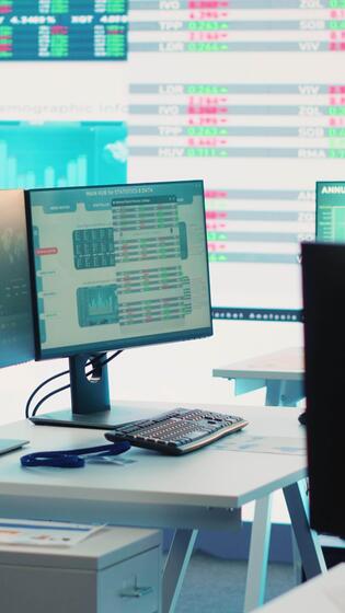 Vertical Empty telecommunications company system control and monitoring room, coworking space equipped with a big screen to follow and monitor enterprise statistics or progress. Camera A. Pro Video
