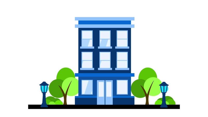 Animation of an office building set in a corporate park with green spaces, representing sustainable and professional business spaces Free Video