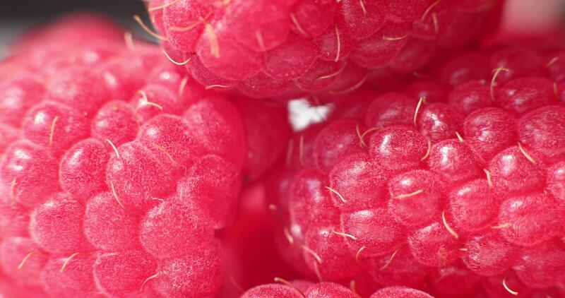 Close-up of fresh raspberries. Beautiful raspberry background. Macro raspberry. Pro Video