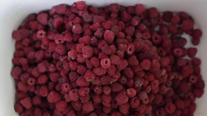 Raspberry Women's hands pour Raspberry from one container to another . Pro Video