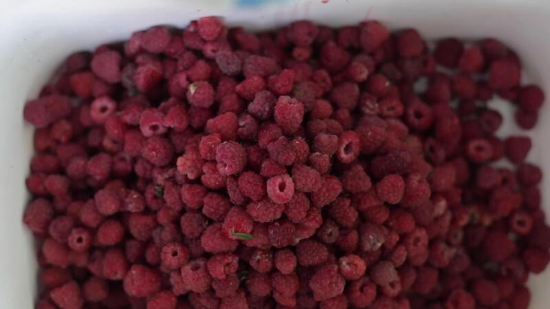 Raspberry Women's hands pour Raspberry from one container to another . Pro Video