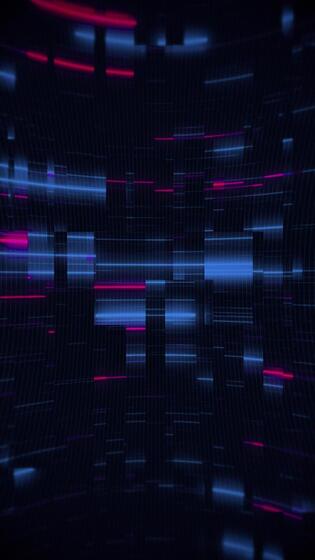 Technology background with flashing blue and red neon digital data lights and glitch effect. Computer hacking or network security concept. Sleek high-tech futuristic vertical animation. Free Video