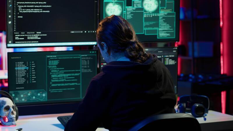 Cybercriminal uploading USB flash drive containing stolen information into computer. Scammer inserting storage device containing sensitive data obtained from security breach Pro Video