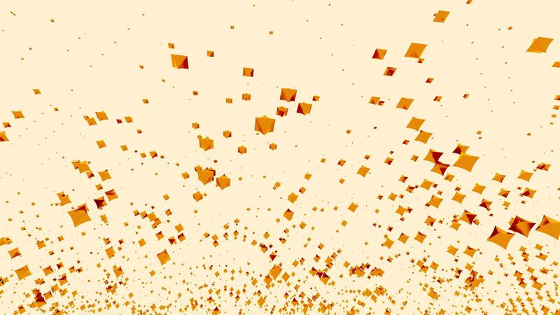 Levitating and springing up randomly bright particles. Design. Geometric and abstract background with randomly moving orange 3D objects on a beige background. Pro Video