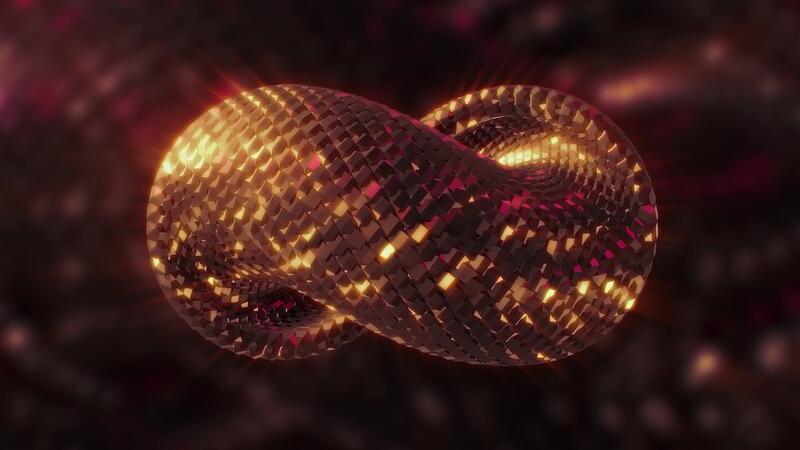 A swirling geometric shape of an orange hue. Motion. A loop made of shiny little particles in abstraction. Pro Video