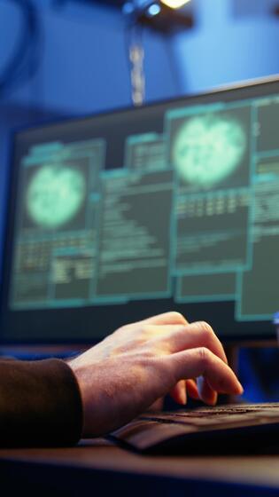 Vertical Hackers typing fast on keyboard in graffiti painted hideout, rushing to finish developing spyware software, using it to gather data from users computers without their knowledge, camera A close up Pro Video