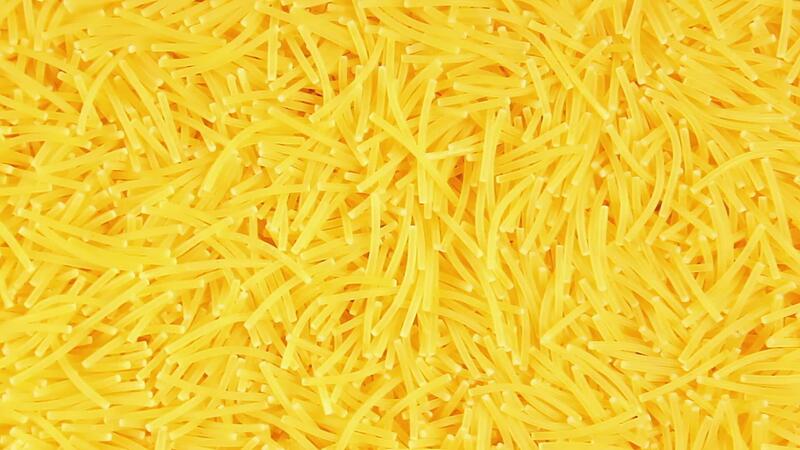 Background of Uncooked Noodles that Slowly Rotating Counter-Clockwise - Top View, Angular Rotation. Texture of Dry Vermicelli Turning Around. Raw Pasta - Left Rotation Pro Video