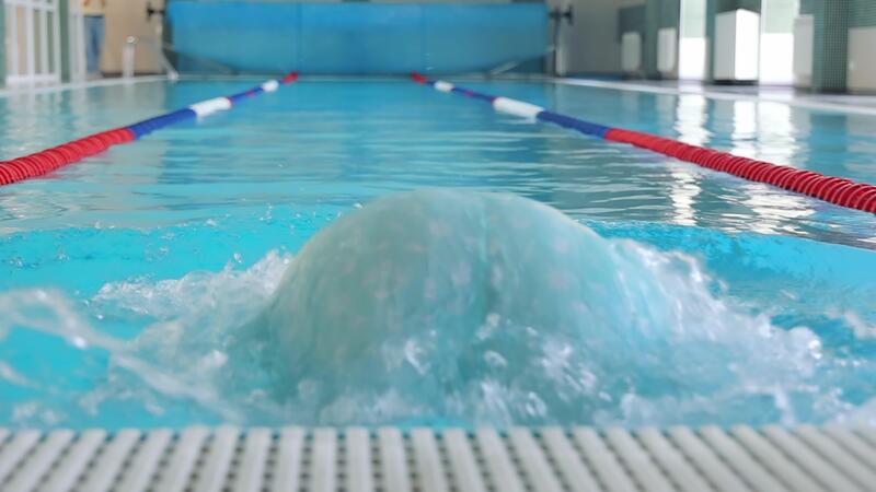 Swimmer splashing in pool lane, Swimmer creating splashes while practicing in a pool lane Pro Video